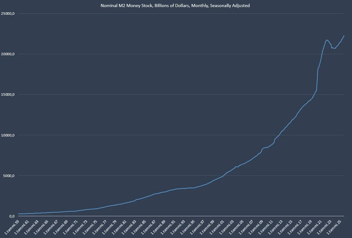 Nominal M2 Money stock, Billions of dollars, Monthly, Seasonally adjusted. Source: https://fred.stlouisfed.org/series/M2SL#